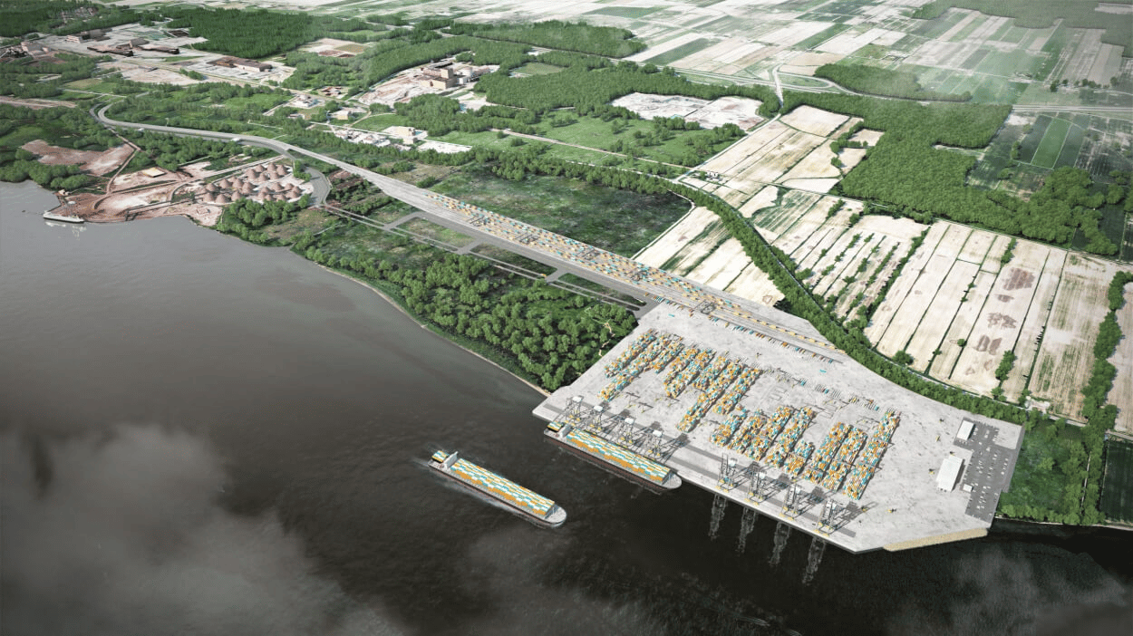 What's being built: The site includes two deep-water berths, a container handling area, an intermodal marshalling yard connected to the main rail network, and a truck gate linked to the road network. Construction of critical in-water works began in October 2025 under a Pomerleau/Aecon joint venture. The design and construction of the land-based facilities are the responsibility of DP World in Canada.